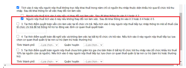 TH2: Có từ 02 nguồn thu nhập trở lên và có khai trực tiếp trong năm