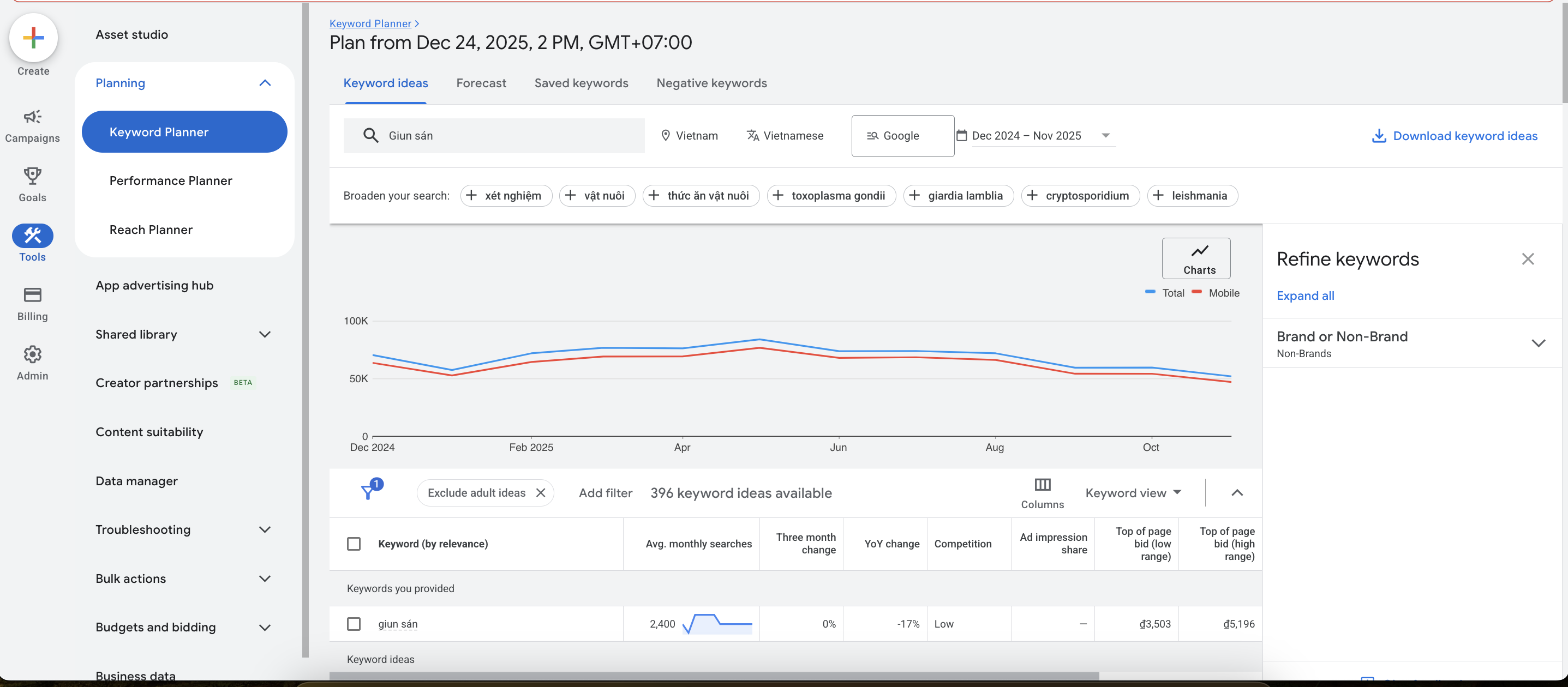Xu hướng tìm kiếm từ khóa "Giun sán" thường ổn định quanh năm, chỉ thay đổi động lực mua hàng: Mùa đông mua để phòng ngừa, Mùa hè mua để trị bệnh.